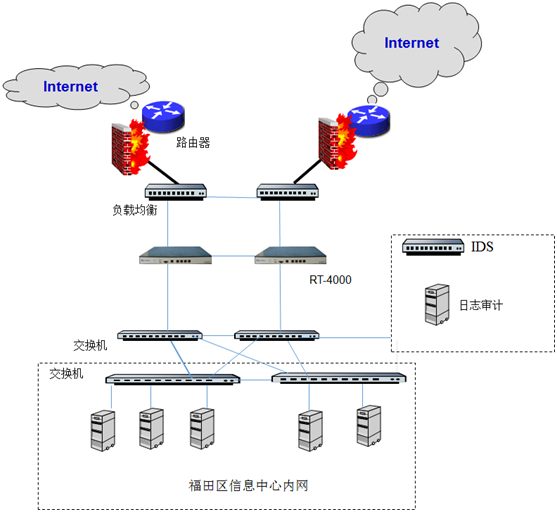 根據(jù)業(yè)務(wù)需求,福田區(qū)政務(wù)網(wǎng)絡(luò)已經(jīng)從千兆網(wǎng)絡(luò)升級至萬兆網(wǎng)絡(luò),現(xiàn)有的安全系統(tǒng)已經(jīng)不能滿足當前的安全需求,同時按照《GB/T 22239-2008 信息安全技術(shù)信息系統(tǒng)安全等級保護基本要求》和《深圳市人民政府辦公廳關(guān)于印發(fā)深圳市電子政務(wù)信息安全管理試行辦法的通知》(深府辦【2013】23號)等要求,為加強福田區(qū)政府網(wǎng)絡(luò)信息系統(tǒng)安全,決定進一步加強福田區(qū)政府的網(wǎng)絡(luò)信息安全建設(shè),建設(shè)一個安全、穩(wěn)定、可靠的信息網(wǎng)絡(luò)安全體系。